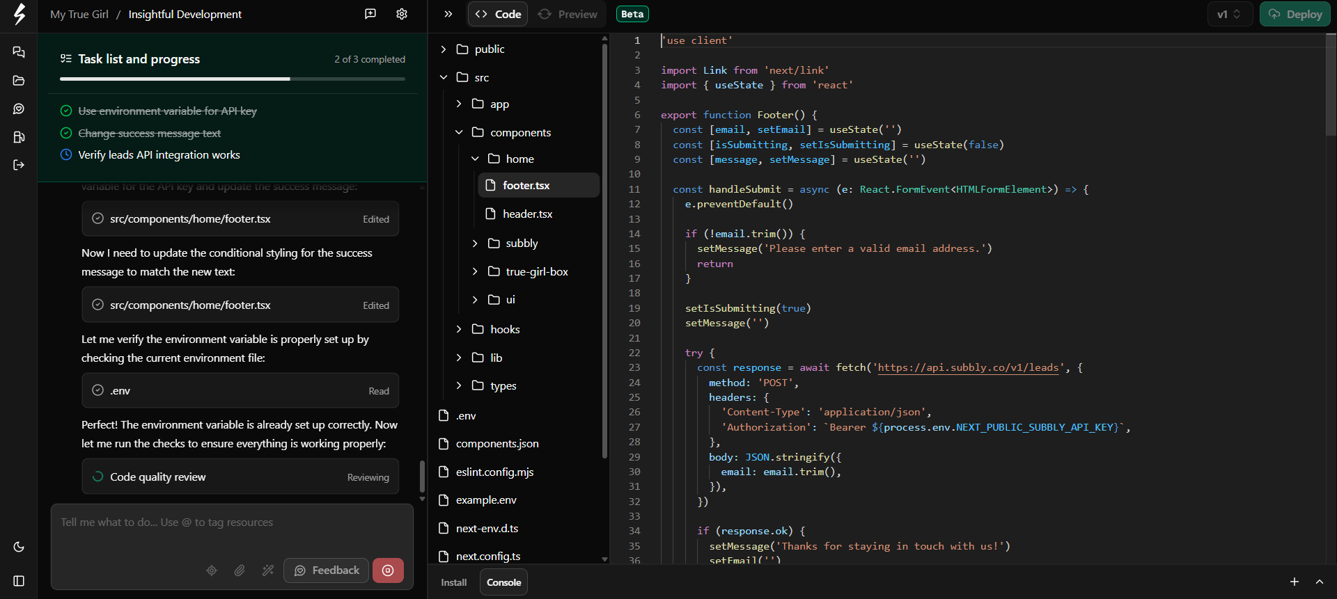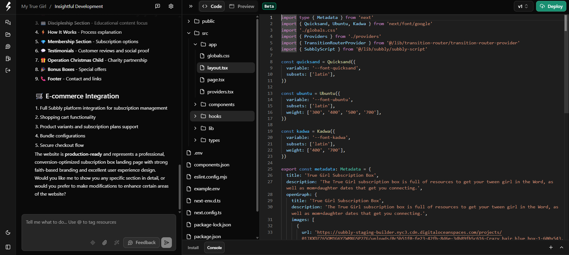 This agentic approach makes the AI website builder act less like a static tool and more like a fast, skilled web developer who works around the clock, never needs a break, and can deliver a fully custom subscription ecommerce website in less than an hour.