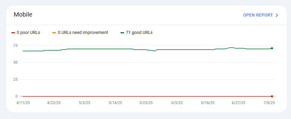 Today, more than 70% of online shopping happens on mobile devices, and a responsive and fast mobile experience is no longer a luxury; it’s a necessity. You can test how responsive yours is using Google Search Console’s Core Web Vitals.
