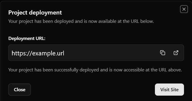 - Starts generating HTML, CSS, and JavaScript code for your site.