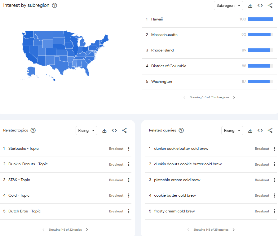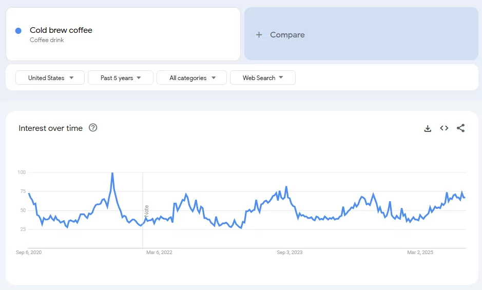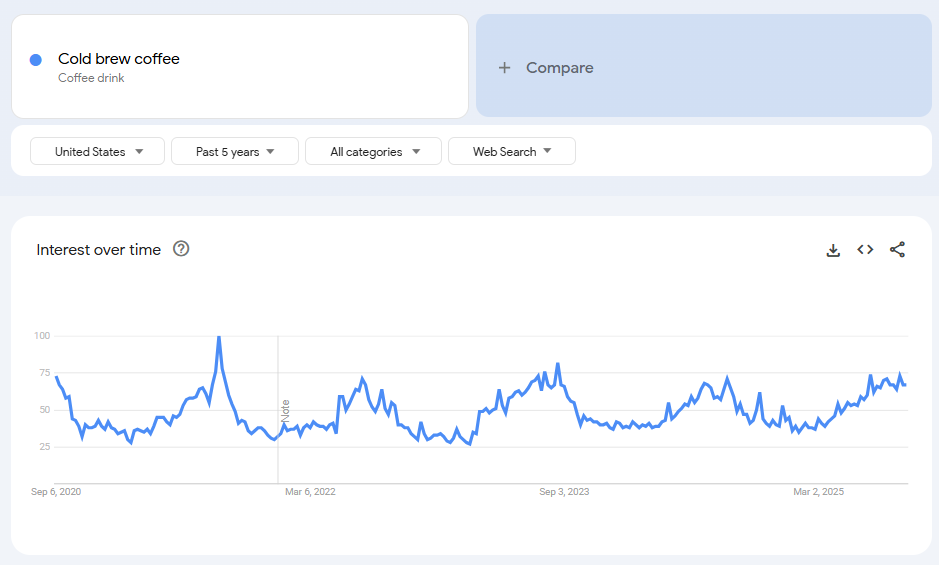 For example, the graph below shows that interest in cold brew coffee is stable, with clear seasonal variations.