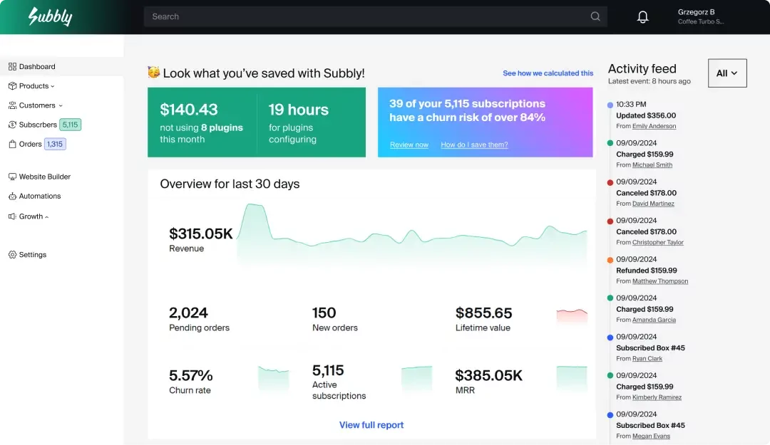 Subbly is built for subscription businesses, with recurring billing and customer management built in.