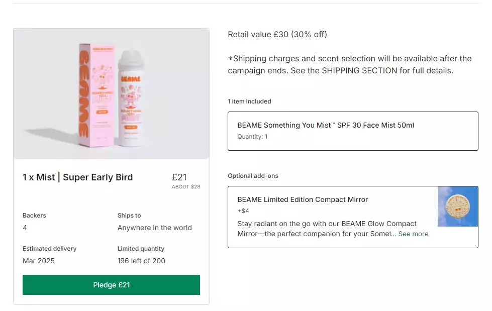 For example, Beame is currently securing funding by offering their products to backers at a 30% discount: