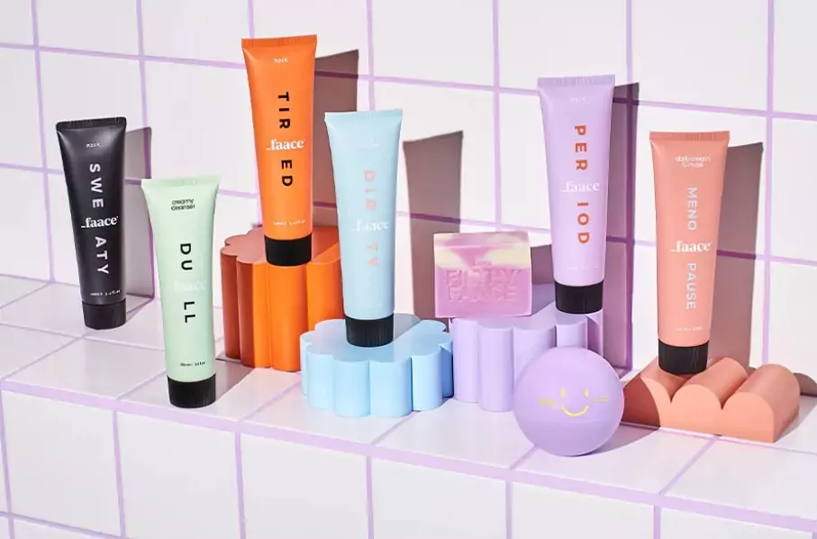 Faace products are named after skin concerns like “dull” or “sweaty” to make it easy for customers to know exactly what they need.