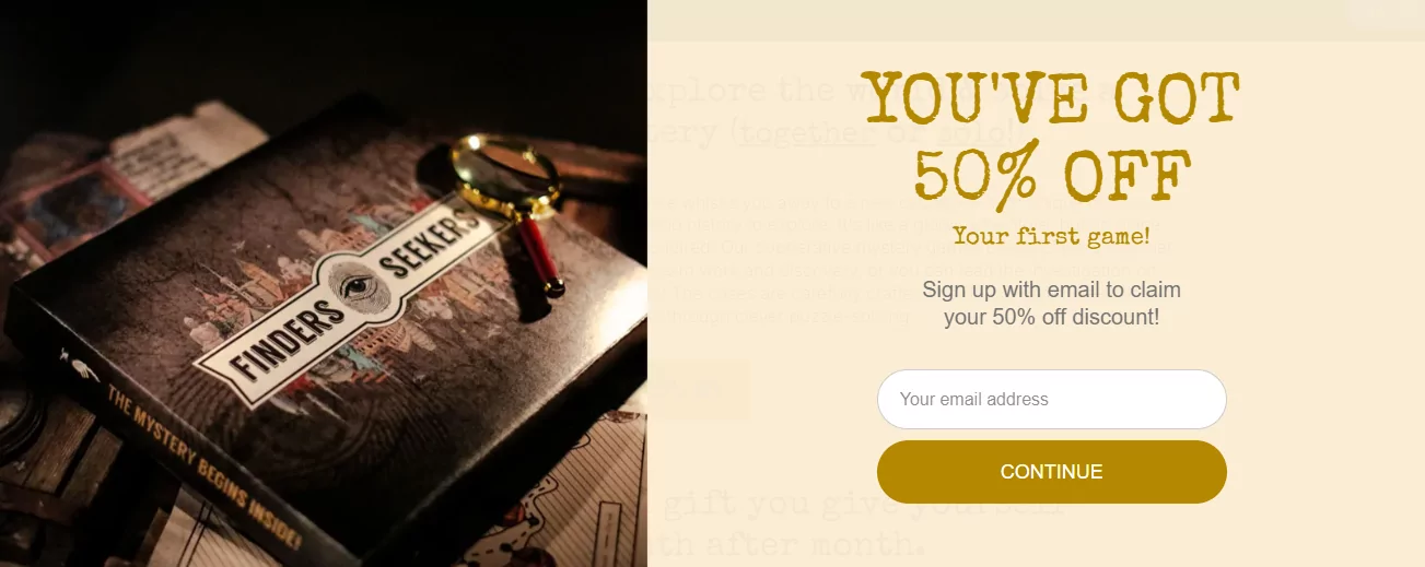 Finders Seekers is a good example of this too. Their website offers a 50% discount if people sign up to their email list.