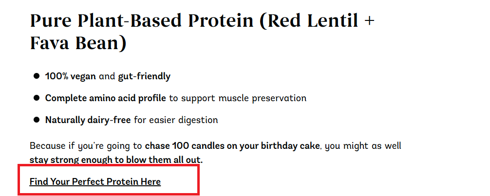 For example, this article on the link between protein and longevity includes a link to the company’s protein supplements.