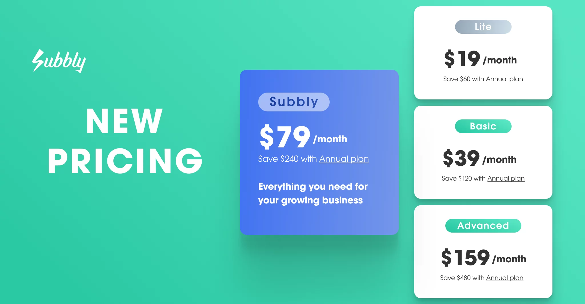 If you have any questions left regarding our new pricing, be sure to check out our FAQs here for more information and remember that you can always contact our Customer Support team via a chat window in the lower right corner on our website, subbly.co, or via email at [email protected].