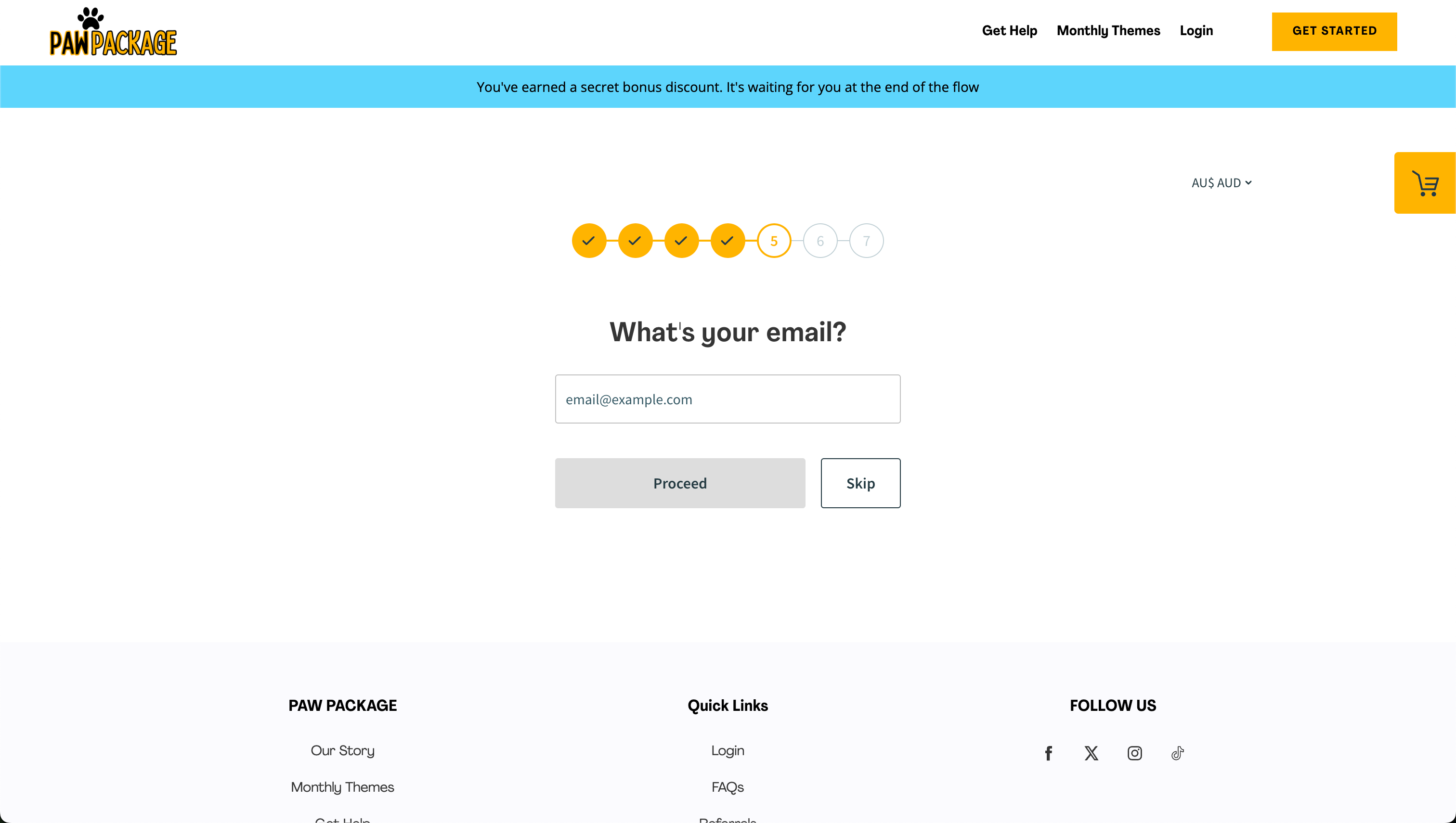 Subbly’s survey feature helps by integrating email collection early in the funnel — between steps 2 and 5. This means that even if a potential customer doesn’t complete their purchase, you’ll still have their email to keep in touch and encourage them to convert later.