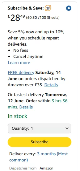 A good example of this is Amazon’s Subscribe and Save offering. This allows customers to schedule automatic deliveries of everyday items like toiletries, groceries, and household supplies.