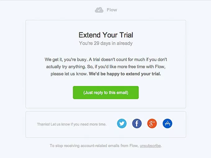 Here’s an example of what a trial extension email could look like for an SaaS: