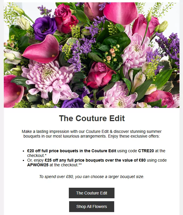 Below is a good example from the flower subscription service Appleyard London. This encourages subscribers to spend more while also enjoying better value for money.