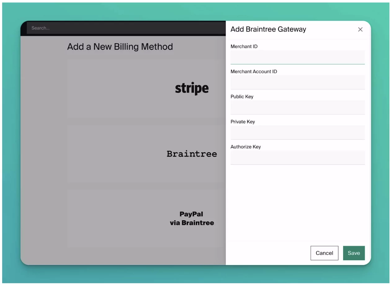 Top Tip: For the most flexibility, we recommend offering multiple payment gateways such as Stripe, PayPal, and Braintree.