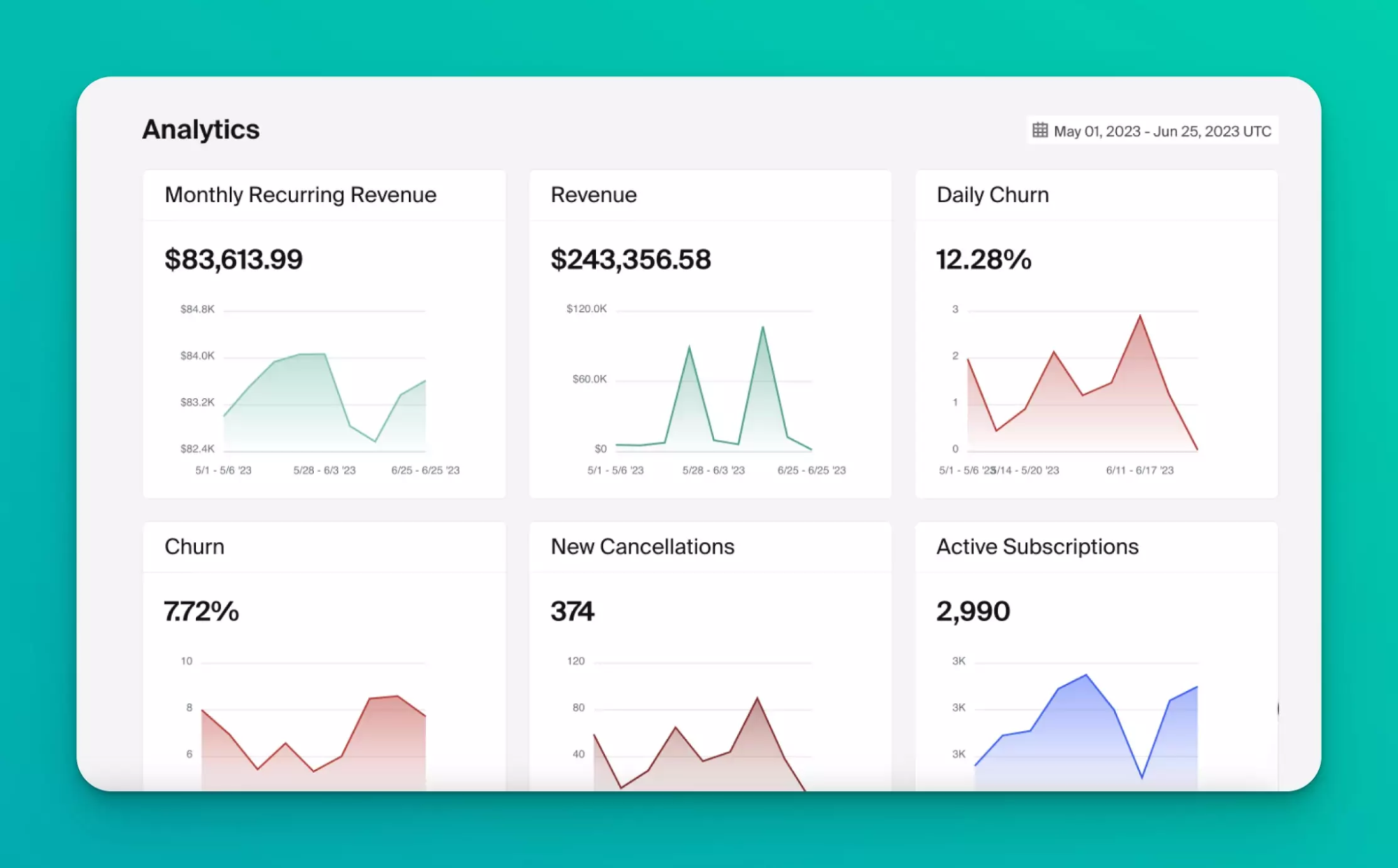 - Churn Rate: Minimizing churn is important because it’s much more sustainable, and cheaper, to retain current subscribers than to acquire new ones. Beyond sales figures, your churn rate is also a good indicator of how satisfied your subscribers are with your products.