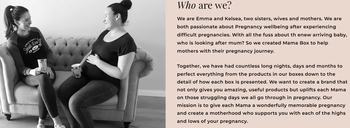 For example, Subbly customer Mama Box explains how the founders both experienced difficult pregnancies, igniting their passion for pregnancy wellbeing.