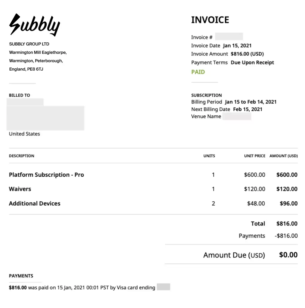 This is what your subscription invoice may look like: