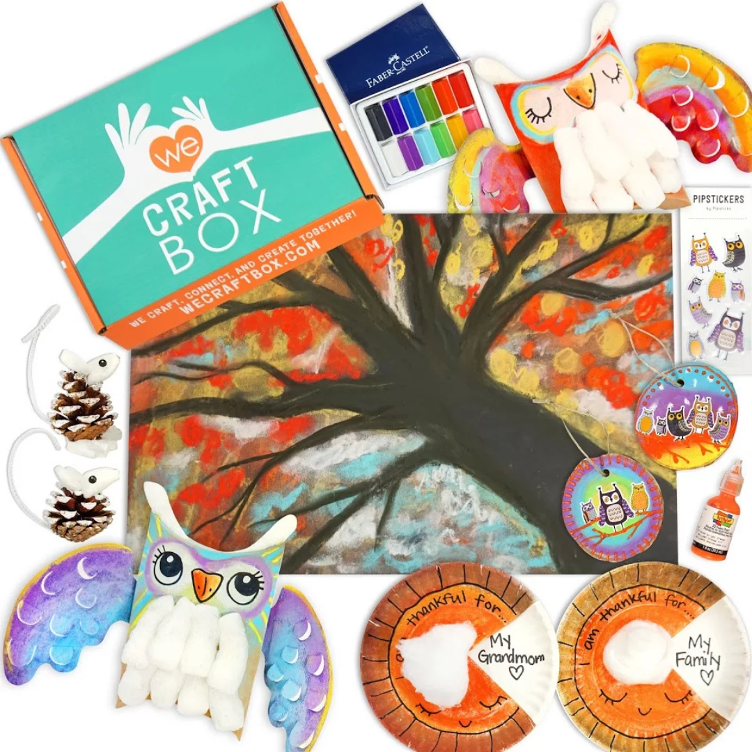 This craft subscription box for kids is available for $34.99/month. One-time boxes can also be found on the website starting at $29.99. Some of the We Craft Box themes included jungle safari, pirates and mermaids, under the sea, and busy bees, as well as several holiday-related options linked to Halloween and Thanksgiving.
